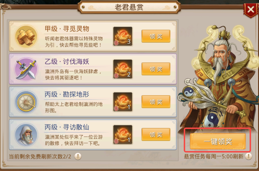 哈喽,大家好,我是有恒,今天给大家介绍一下浑天宝录的周任务-老君悬赏。