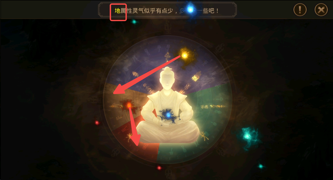 瀛洲外岛一处地方灵气异常浓郁,快去探查一番吧!该任务需要将图中4种颜色均分圆盘,点击不同颜色的灵气可以增加对应颜色的比例,可以根据图中轮盘各种颜色区域大小和上方文字提示去点击对应的灵气,直至4种颜色平衡即可。如图示就是地(黄色)和火(红色)灵气缺少,我们就要点击红和黄色的灵气去增加黄色和红色的比例。