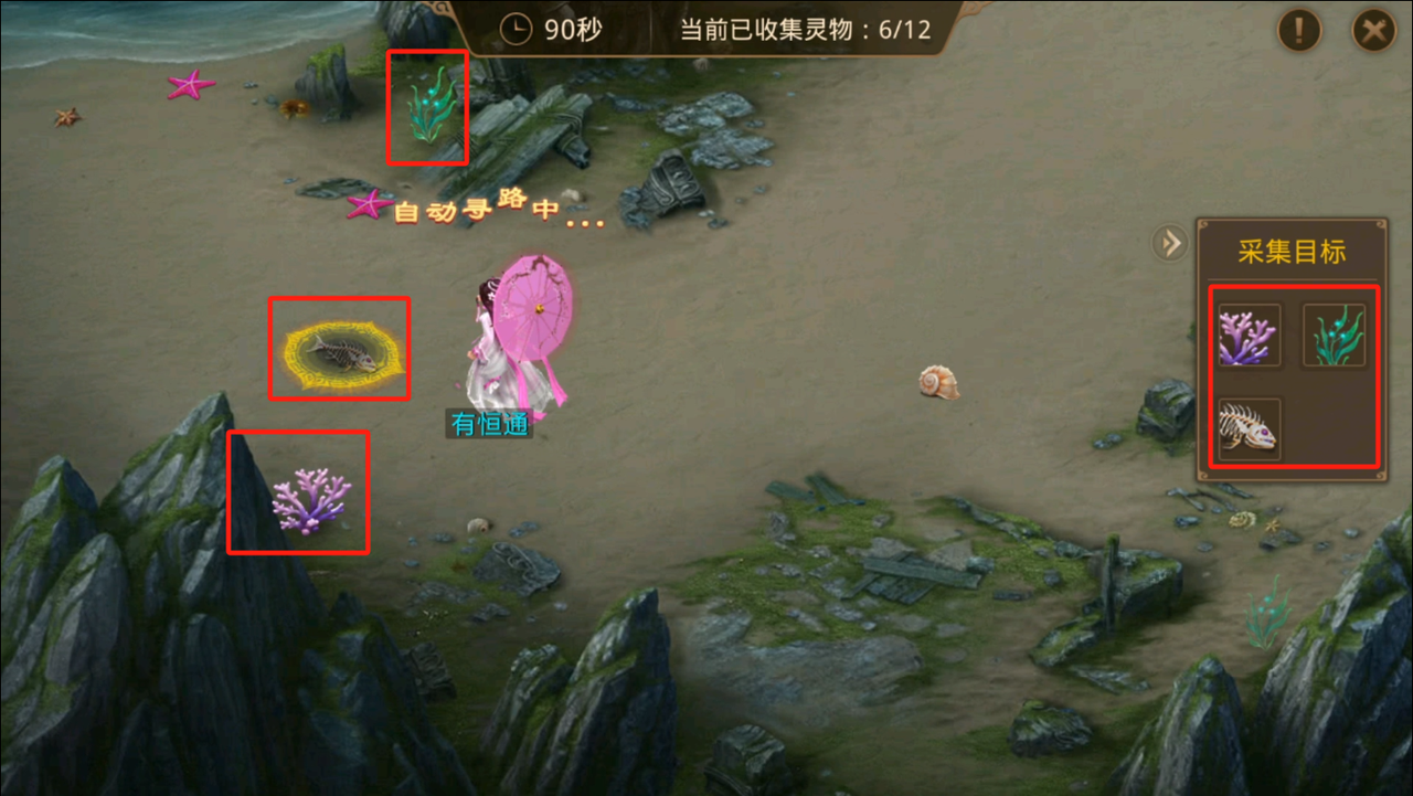 听闻老君炼器需以特殊灵物为引,快去帮他寻觅些吧!该任务需要根据采集目标提示,在规定时间内采集到指定量的物品即可,注意一下物品可采取和不可采取没有什么区别,需要大家凭外观去区分,然后能点击就可以采集。甲级乙级均有,甲级要求采集12个物品,乙级要求采集8个物品。