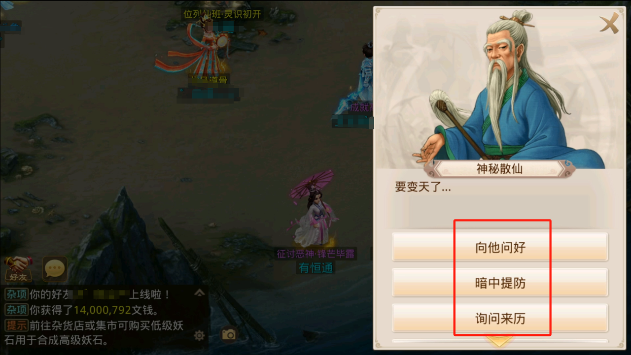 瀛洲某处似乎来了一位云游的散修,快去拜访一下吧。右侧任务栏点击该任务,会自动寻路至神秘散仙处,和其对话即可完成任务。