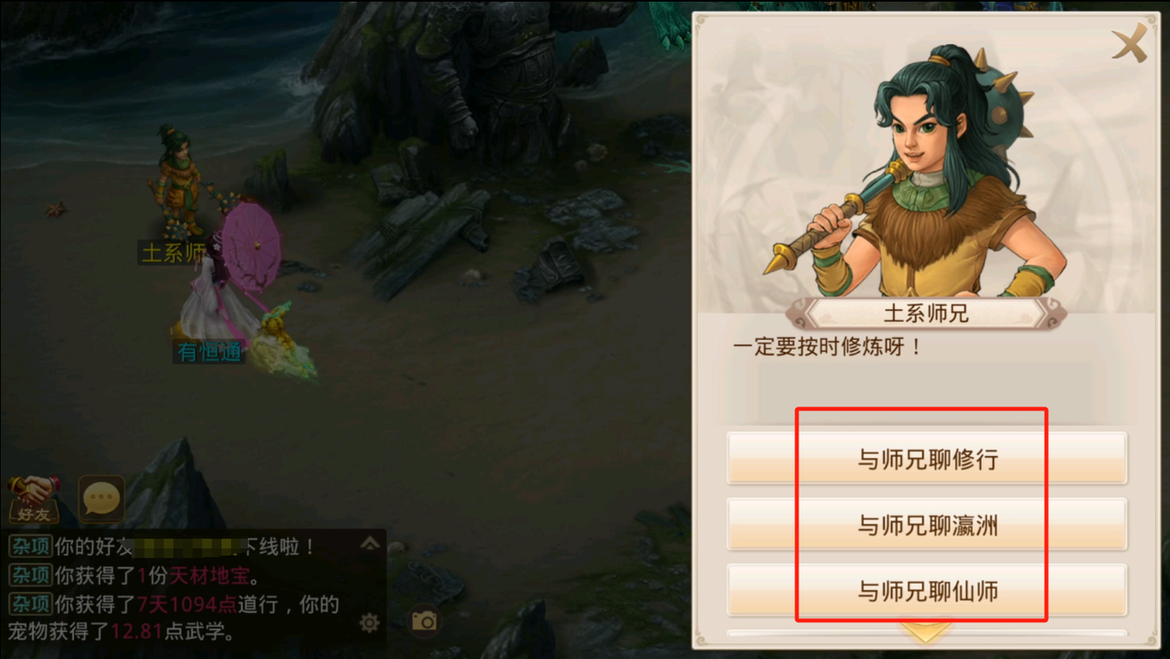 有一名在瀛洲修行的弟子似乎有些烦恼,快去看看吧!右侧任务栏点击该任务,会自动寻路至师兄处,和其对话即可完成任务。