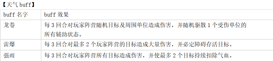 战场效果有三种类型。分别是攻击、防御以及天气。